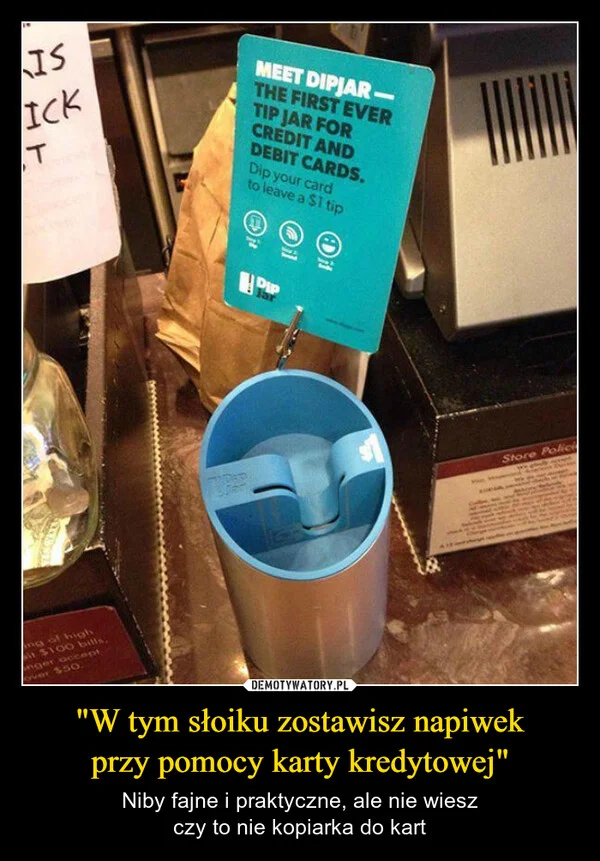 "W tym słoiku zostawisz napiwek przy pomocy karty kredytowej"