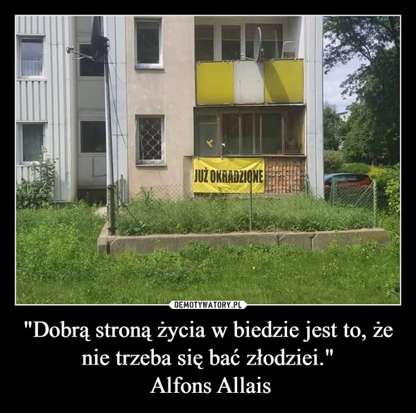 "Dobrą stroną życia w biedzie jest to, że nie trzeba się bać złodziei." Alfons Allais