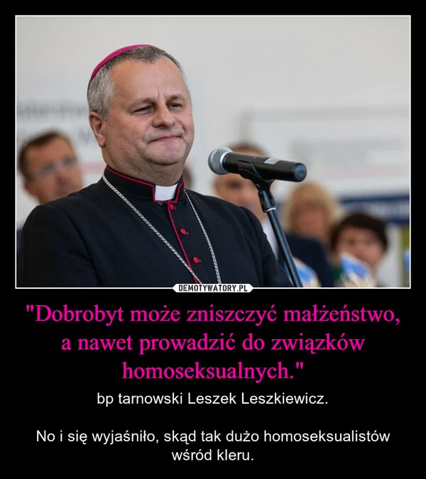 "Dobrobyt może zniszczyć małżeństwo, a nawet prowadzić do związków homoseksualnych."