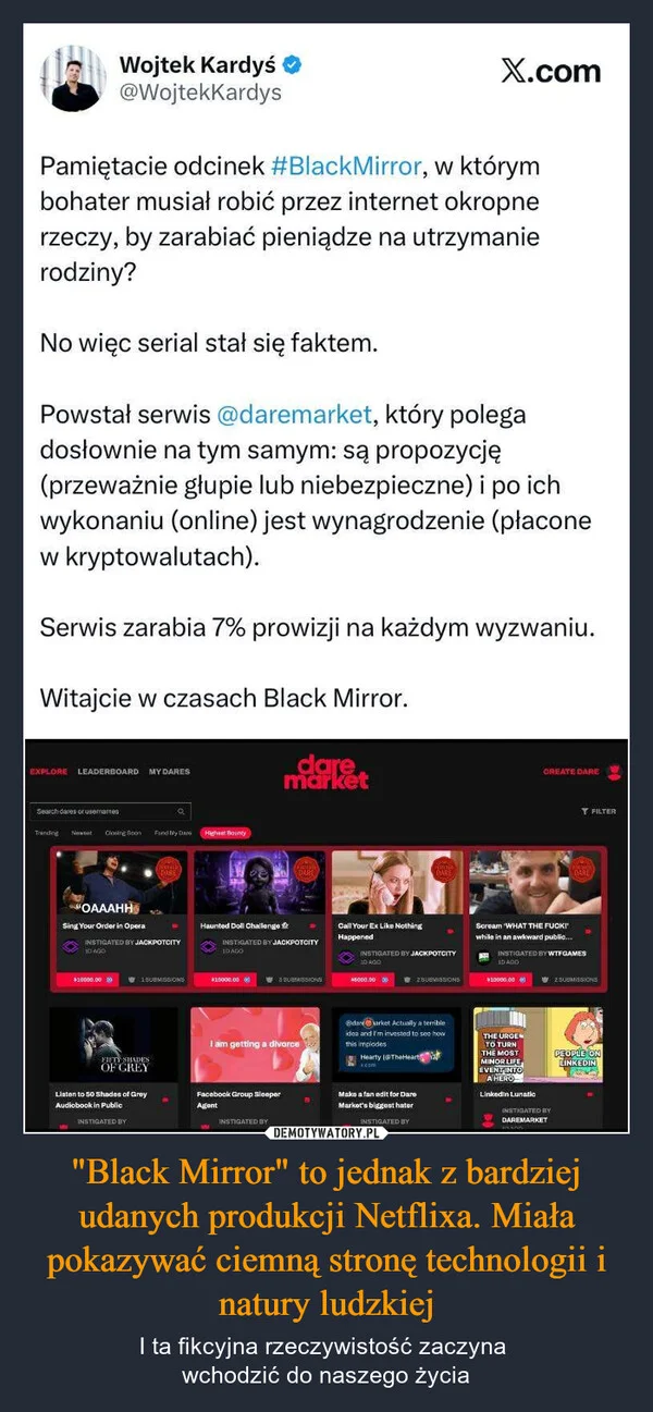 "Black Mirror" to jednak z bardziej udanych produkcji Netflixa. Miała pokazywać ciemną stronę technologii i natury ludzkiej