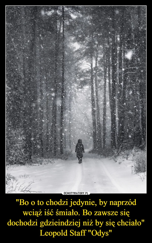 "Bo o to chodzi jedynie, by naprzód wciąż iść śmiało. Bo zawsze się dochodzi gdzieindziej niż by się chciało" Leopold Staff "Odys"