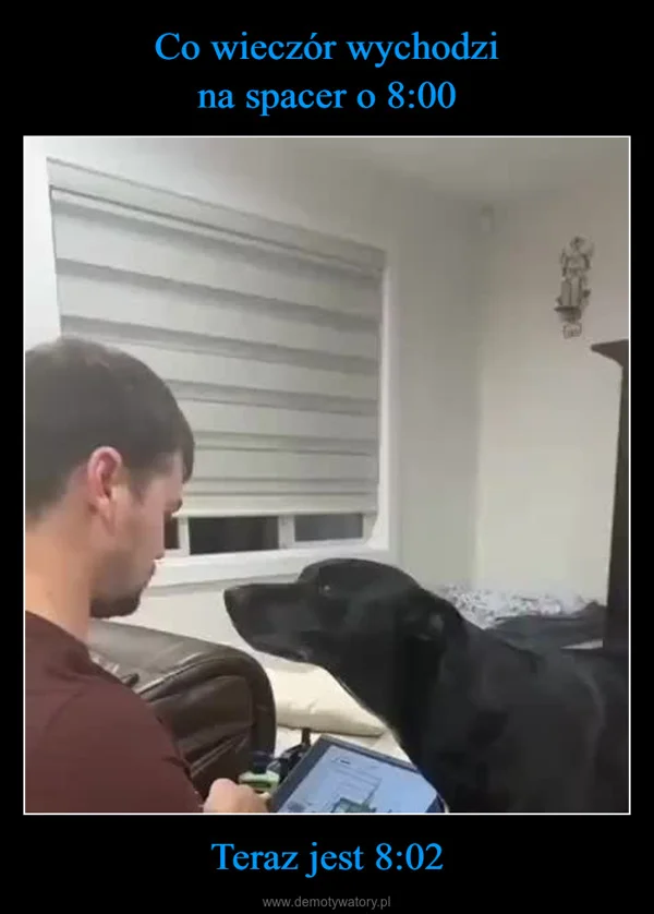 Co wieczór wychodzi na spacer o 8:00 Teraz jest 8:02